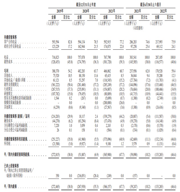 财务方面,截至2021年12月31日止三个年度以及2021年及2022年6月30日止六个月,公司的毛利分别约人民币3.88亿元、人民币4.82亿元、人民币4.66亿元、人民币2.38亿元及人民币1.71亿元。