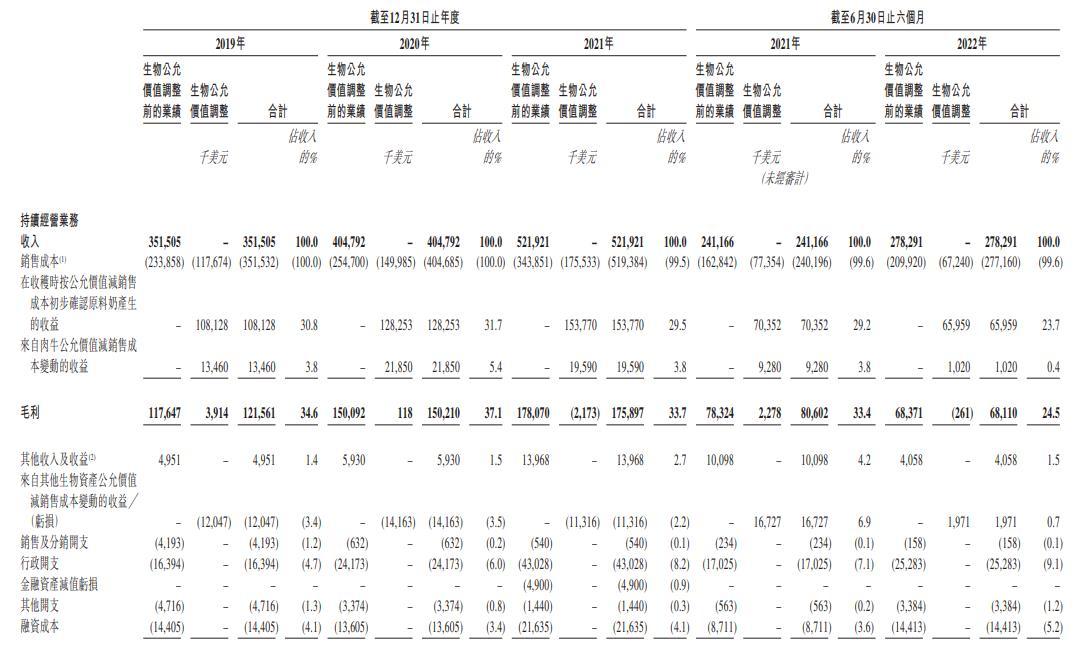 公司的两个主要业务分部分别为原料奶业务及肉牛业务。原料奶业务,公司通过自有规模化奶牛牧场繁育及饲养奶牛,并将原料奶出售给中国下游乳制品制造商,供其进一步加工成优质乳制品。公司多元化的客户群包括(i)全国及地区领先的乳制品制造商,于2021年及截至2022年6月30日止六个月约占公司原料奶业务总收入的83%及81%;及(ii)新兴乳制品品牌,于2021年及截至2022年6月30日止六个月约占公司原料奶业务总收入的15%及16%。