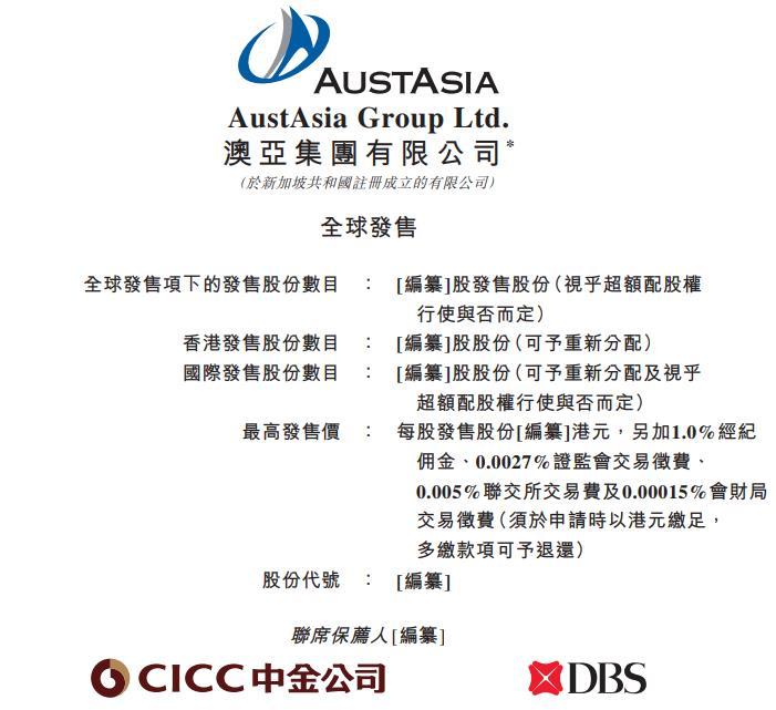 智通财经APP获悉,据港交所10月14日披露,澳亚集团投资控股有限公司二次递表港交所,中金公司和DBS为联席保荐人。
