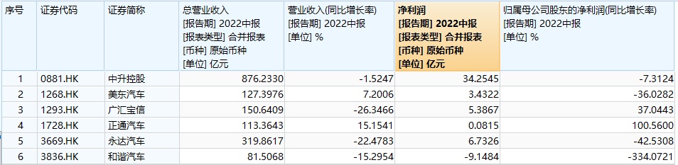 据不完全统计,今年上半年,中升控股、广汇宝信、永达汽车这些汽车经销商概念股们营收和净利润均有所下滑。譬如,期内中升控股营收同比下滑1.52%,净利润同比下滑7.31%;净利润同比下滑42.53%。在这其中,唯有美东汽车、广汇宝信、正通汽车增长态势还算稍微好点。其中,正通汽车上半年录得营收为113.36亿元,同比增长15.15%;录得净利润为0.08亿元,同比增长100.56%。而美东汽车则是营收维持正增长,广汇宝信则是净利润维持双高位数增长。