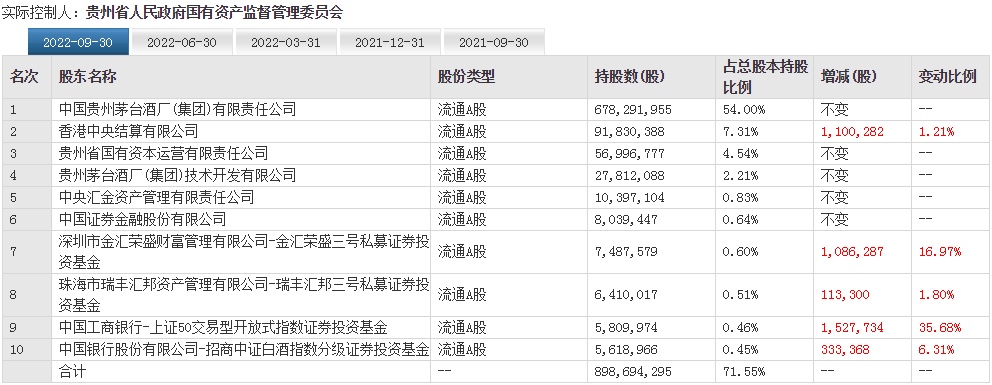智通财经APP获悉,10月16日,贵州茅台(600519.SH)三季报出炉。与此同时,其前十大股东的持股动向也浮出水面,四家基金公司纷纷增持。