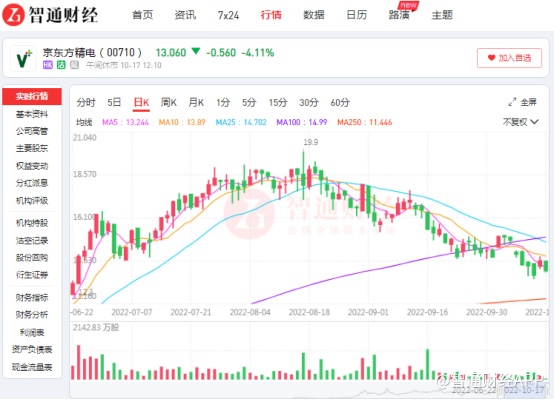 而谈到车载显示领域,就不能不谈到车载显示模组龙头——京东方精电(00710)。在8月中旬交出亮眼中报业绩后,该公司的股价却进入了下行通道,自8月17日的最高价19.9港元以来,两个月间公司股价已跌去三成有余。
