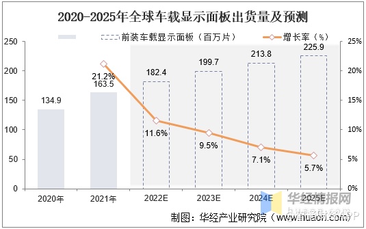据华经产业研究院数据显示,预计2025年车载显示面板出货预计可达2.26亿片,全球车载显示屏的市场规模有望超128亿美元。
