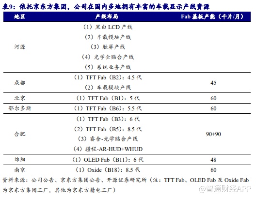 京东方精电主要从事汽车及工业显示屏业务,具备单色显示屏制造、薄膜晶体管TFT以及触控屏显示模组装配产能,是京东方集团旗下唯一的汽车显示模组及系统业务平台。