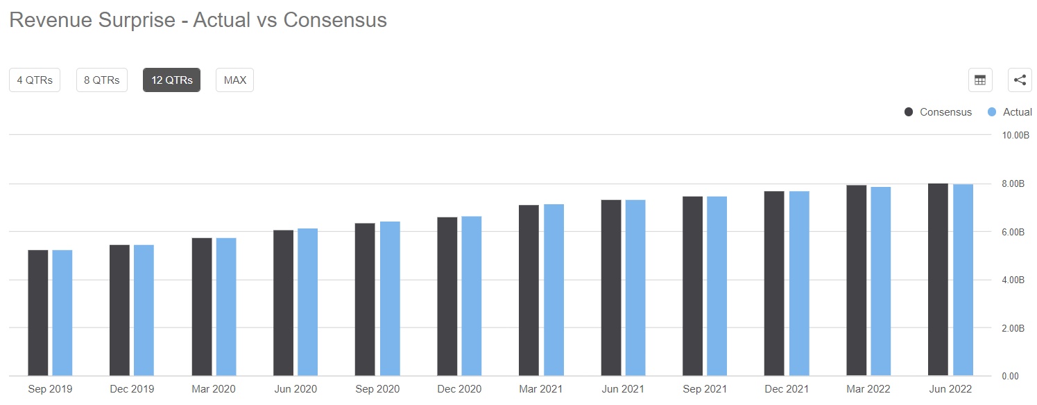 现在是逢低买入该股的机遇吗? 多数分析人士认为明显还未到。在即将发布的盈利报告中,奈飞管理层面临着大量亟待解决的棘手难题,尤其是订阅数据,因此短中期内投资者信心可能难以得到实质性修复。数据显示,奈飞近两个季度的总体营收均未能达到市场普遍预期。