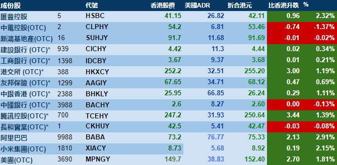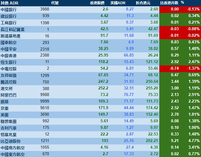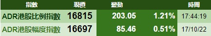 智通财经APP获悉,周一美股三大指数集体大涨,港股ADR指数上涨,按比例计算,收报16815点,较香港收市升203.05点或1.21%。