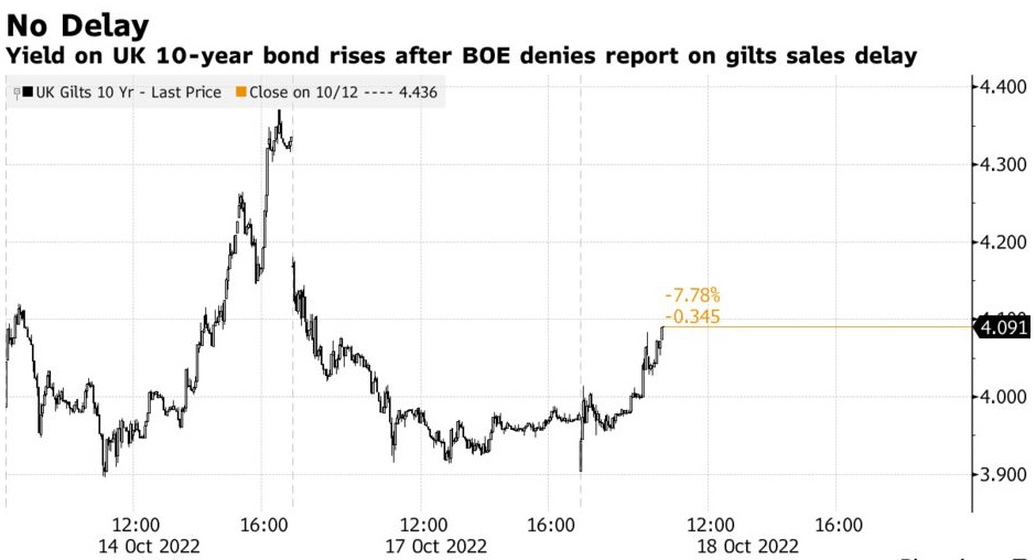这是对近几周剧烈波动的英国市场的最新打击。鉴于市场情绪仍很脆弱,养老基金面临追加保证金的要求,投资者一直预计英国央行将推迟实施所谓的量化紧缩政策(QT)。