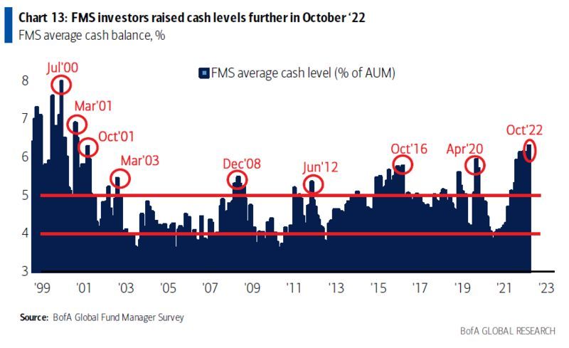 策略师表示:“市场流动性明显恶化。”他们指出,投资者的投资组合中有6.3%是现金,这是2001年4月以来的最高水平。此外,49%的市场参与者减持股票。