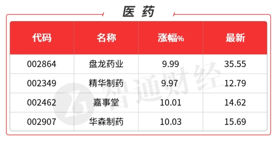 相对而言,医疗医药这块的群众基础更好,因为涉及的板块个股更多,基本面也更强,前期跌得也够惨。今天发掘的方向是中医药类,尤其是肝功能,分支龙头双成药业(002693.SZ)持续一字,带动盘龙药业(002864.SZ),其它检测方向的和富中国(603122.SH)、疫苗加连锁的嘉事堂(002462.SZ)等。