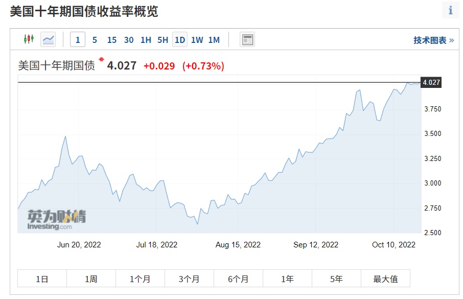 (即时10年期美债收益率-来源“英为财情”)