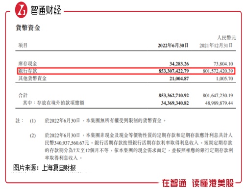 智通财经APP了解到,上海复旦负债率低,手头现金充足,且每年经营现金流净额均可满足再投资需求。截至2022年6月,该公司货币现金及交易性金融资产合计超过11亿元,占比总资产超过20%。而在8亿元货币现金中基本是银行存款,大部分为定期,交易性金融资产也主要为结构性存款。