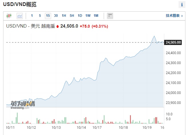智通财经APP获悉,在越南央行宣布将越南盾兑美元的每日交易区间从中间价的上下3%扩大至5%之后,越南盾连续第10天下跌,为14年来最长的连续跌势。截至发稿,美元兑越南盾报24505。