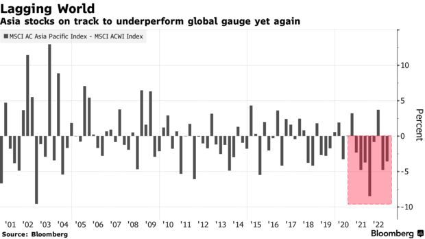 包括Chetan Seth在内的野村控股策略师在一份报告中指出,对于一年以上的投资期限而言,“亚洲股票的风险回报相当有吸引力”。他们还认为,持续的复苏“可能会在2023年上半年的某个时候发生”。