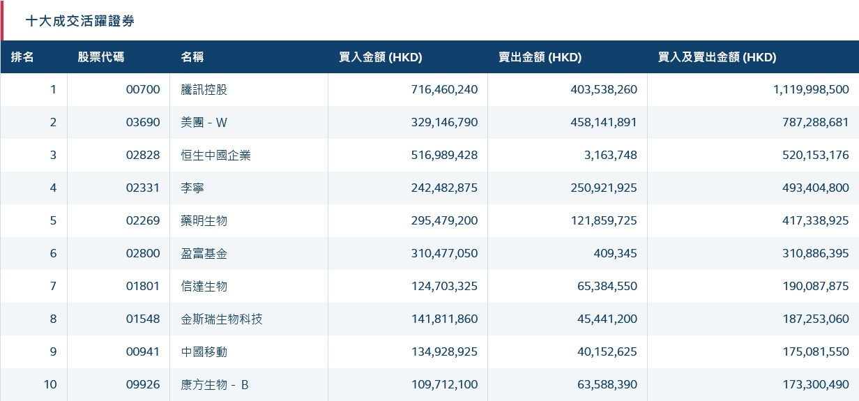 此外,恒生中国企业(02828)、盈富基金(02800)、快手-W(01024)分别获净买入8.53亿、3.1亿、9016万港元。