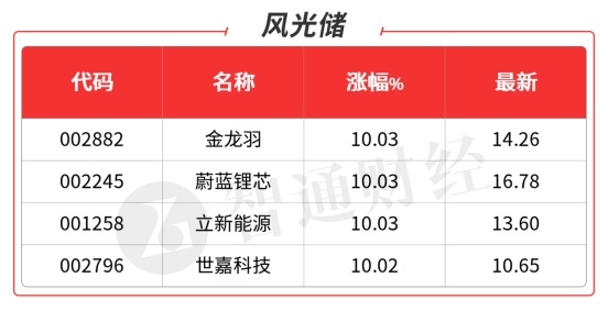 昨日储能方向被光伏报道,热度得以维系,提到的世嘉科技(002796.SZ)被顶了一字,今天主要发酵到了锂电池板块。如金龙羽(002882.SZ)等,次新方向有立新能源(001258.SZ)。