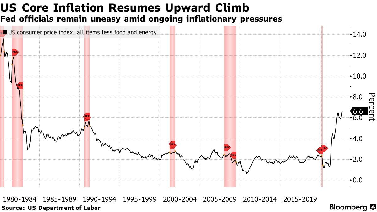 美国劳工部10月13日的一份报告强化了市场加息预期。报告显示,截至9月份的12个月里,美国不包括食品和能源的核心消费者价格(核心CPI)上涨了6.6%。这标志着,在经历了几个月的缓和期之后,这一受到广泛关注的指标再次加速增长。