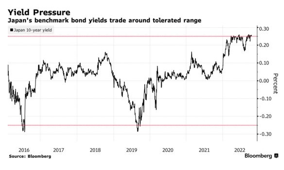 升破0.25%突显了市场根深蒂固的猜测,即日本央行将不得不调整其收益率曲线控制政策。日本央行的这一政策看起来与其他央行的政策越来越不一致。尽管日本经济增长前景依然疲弱,有理由继续推行宽松政策,但极低的利率已将日元汇率压低至32年低点,推高了消费者和企业的输入性通胀。