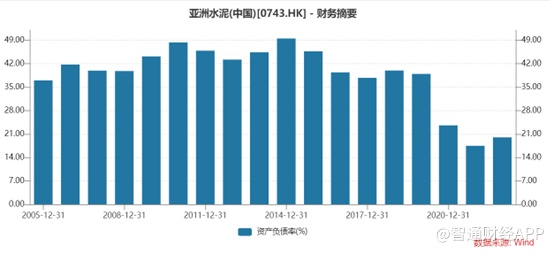 与其他水泥企业相比,业绩大降7成的亚洲水泥显然业绩垫底,不过好在公司现金流相对充裕,截至2022年6月30日,亚洲水泥现金及现金等价物的期末余额为12.97亿元。另外近年来公司的资产负债率也在持续下降,截至2022年6月30日,公司资产负债率为20.01%,与历年相比,上半年亚洲水泥的资产负债率持续下行,财务状况持续得到改善。