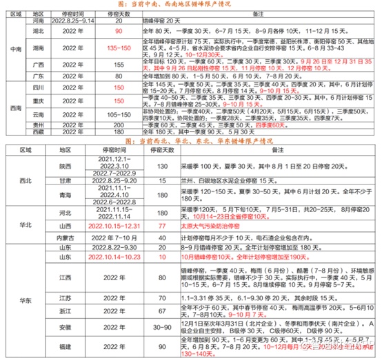 供给端方面,短期来看,水泥价格的上涨主要源于全国部分省区10月份增加错峰停窑计划,以缓解不断上升的库存和燃料成本压力。山东、河北、河南熟料线计划10月份停窑10天,福建、湖南、广西、广东、四川等省区计划10-12月累计停窑30-35天,贵州计划10-12月停窑60天。