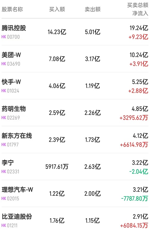新东方在线(01797)获净买入6614万港元。消息面上,华泰证券发研报表示,公司商业模式兼具直播影响、电商平台、优质消费品品牌企业的特点,看好东方甄选内容的持续创新,在选品、运营、用户服务等环节逐步体系化地进行品牌建设,因此认为应具备一定估值溢价。该行维持“持有”评级,目标价上调至31.31港元。