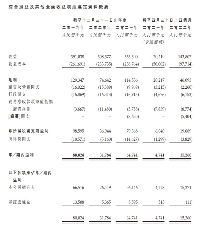 财务方面,在2019年、2020年和2021年年度,多想云分别实现收益3.91亿元(人民币,下同)、3.08亿元、3.53亿元,期内溢利分别为8002.4万元、3178.4万元、6474.1万元。2021年和2022年截至4月30日的前四个月,公司收益分别为7021.9万元、1.44亿元,期内溢利分别为474.1万元、1526.0万元。