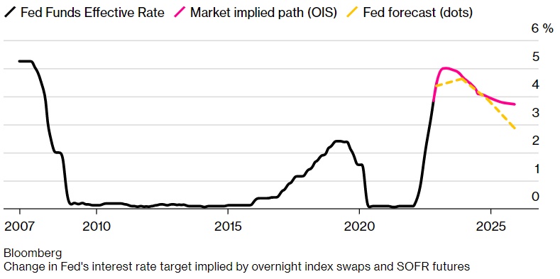 然而,在政策利率峰值预期上升的同时,美国国债收益率曲线也上升至多年来新高,