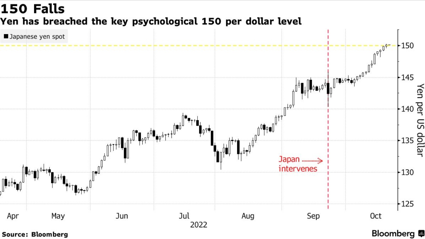 智通财经 APP 获悉,日元兑美元汇率跌破150关口,令交易员猜测日本当局何时会出手干预,以阻止日元进一步下跌。