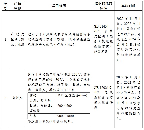 为提升有关产品能源利用效率,根据《能源效率标识管理办法》(国家发展改革委、原国家质检总局2016年第35号令)规定,近日,国家发展改革委、市场监管总局联合发布《关于印发多联式空调(热泵)机组和电风扇两类产品能源效率标识实施规则(修订)的通知》(发改环资规〔2022〕1594号,以下简称《通知》)。