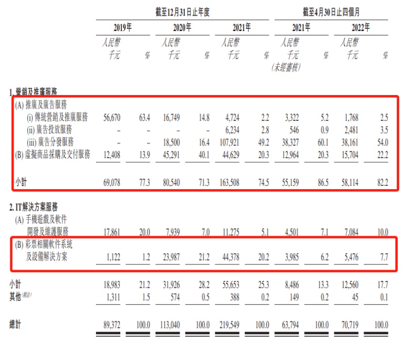 若仅从其业务概述粗略一看,润歌互动似乎与港股广告营销板块中的其他企业并无二致,在恒指大盘震荡期难以独善其身,但其招股书字里行间提到的“彩票业务”却又透露出这家公司的独特性,也让这家公司后续的估值和股价走势成为市场的一个关注点。