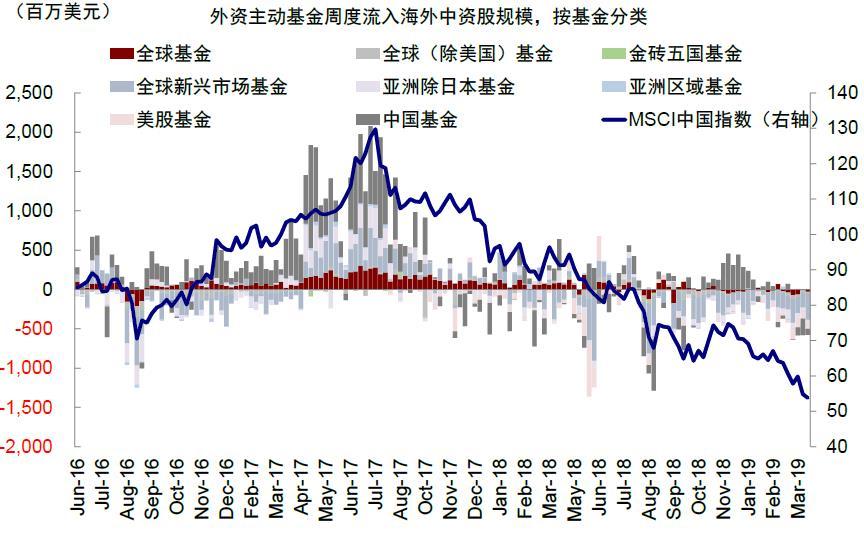 图表:新兴市场主动基金、亚洲除日本主动基金近期流出海外中资股较为明显
