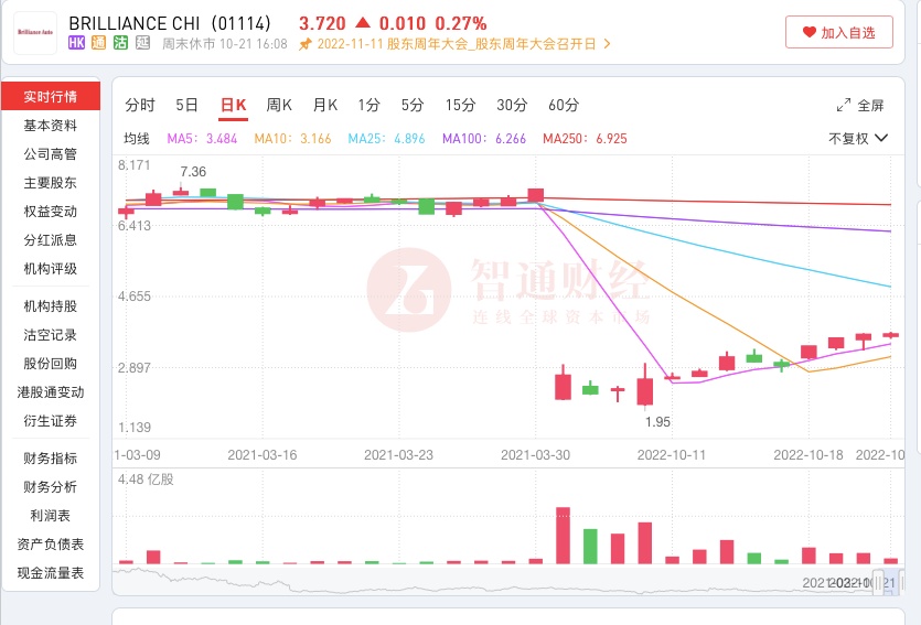 复牌之后股价缩水七成的华晨中国(01114)迎来修复反弹表现。截至10月21日收盘,公司实现四连阳,累积增幅超25%,总市值达187.7亿港元。