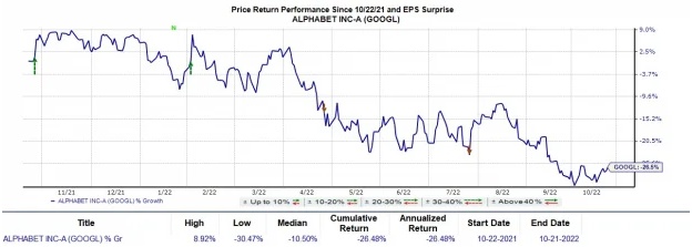 智通财经APP获悉,谷歌母公司Alphabet(GOOG.US)将于10月25日发布第三季度财务报告,该公司目前已从高点下跌了33%,投资者将会密切关注这家公司。随着营销人员在经济低迷期间削减支出,Alphabet的财报将从另一个角度解读广告收入放缓的影响。
