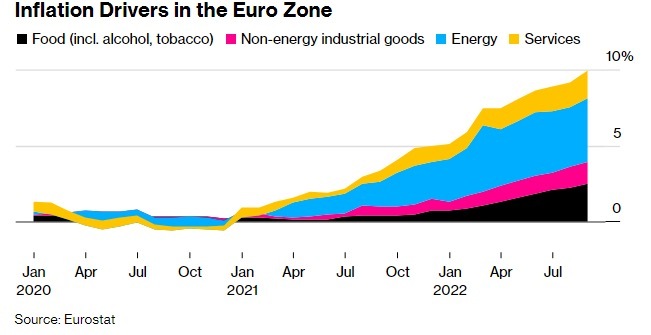 此前国际货币基金组织(IMF)就快速通胀和经济增长乏力的“毒性组合”发出警告,预计今年冬天欧元区19个成员国中超过一半将出现经济衰退。与此同时,该机构认为,明年可能不得不维持紧缩的货币政策。