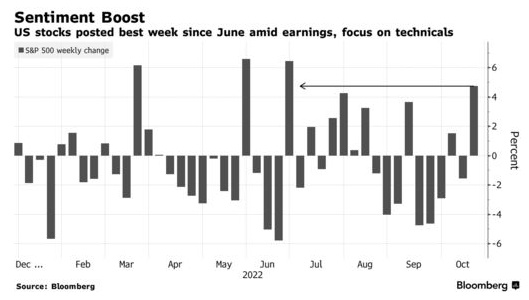 上周五,标普500指数上涨2.4%,至3752.75点,创下自6月以来表现最好的一周,这主要是受益于技术支撑,以及部分企业报告的盈利好于预期。而随着交易员们厌倦了长时间讨论与高通胀和鹰派政策有关的看跌论调,对股市的看涨押注兴趣也正在上升。