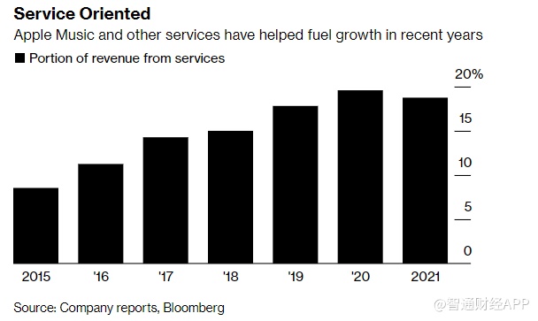 苹果近年来进军流媒体领域是为了从服务中获得更多营收。如今,这类服务创造了该公司近四分之一的销售额,在6月当季接近200亿美元,而2015年这一占比还不到10%。苹果将于本周发布最新的季度业绩。