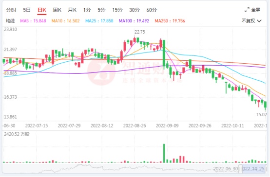 盈利的大幅下滑,使得公司跌跌不休的股价雪上加霜。智通财经APP注意到,维达国际的股价自今年8月创下22.75港元的年内高点后,就开始反复向下。随着三季度业绩的公布,公司股价进一步下行。10月25日,维达国际的股价更是一度跌至15.02港元,创下年内股价新低,较年内高位跌去超30%。