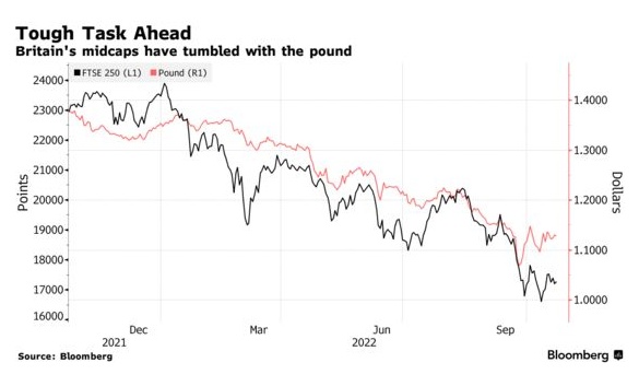 对于英国经济来说,新首相苏纳克或许是一个安全的人选,尽管这位前高盛银行家即将结束特拉斯在唐宁街短暂任期内的那种极端市场波动,但苏纳克更为谨慎的财政政策不太可能给专注于英国国内市场的股票下跌带来直接的缓解。