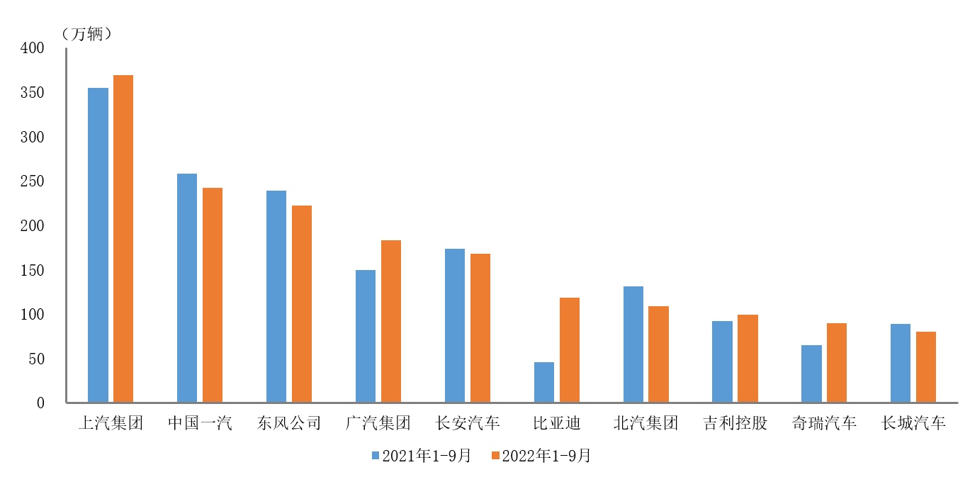 智通财经APP获悉,10月26日,据中国汽车工业协会统计分析,2022年1-9月,汽车销量排名前十位的企业(集团)共销售1679.2万辆,占汽车销售总量的86.2%。在汽车销量排名前十位企业中,与上年同期相比,比亚迪(01211)销量增速最为明显,奇瑞和广汽(02238)也呈两位数快速增长,上汽(600104.SH)和吉利(00175)略增,其他企业呈不同程度下降。