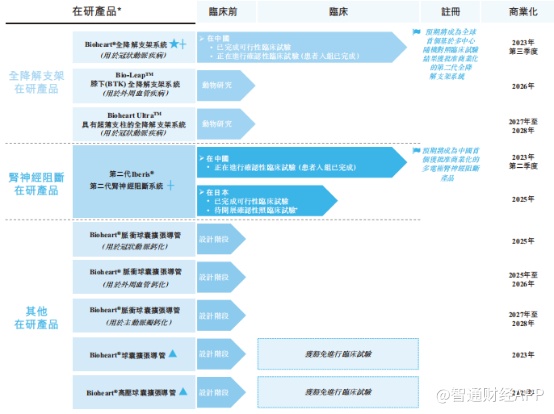 目前,公司研发管线中共有九款在研产品,其中大部分还处于临床前阶段,支撑公司业绩前景的主要是两款重要产品:用于冠状动脉疾病的Bioheart全降解支架系统和第二代肾神经阻断系统Iberis。