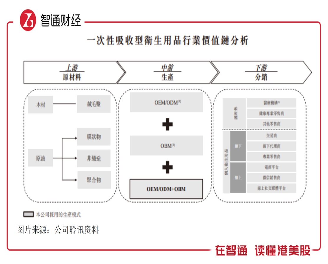 佳捷康产品属于一次性吸收型卫生用品行业,从产业链分类看,该公司处于中游生产领域,业务模式包括OEM/ODM、OBM、OEM/ODM及OBM的混合模式。