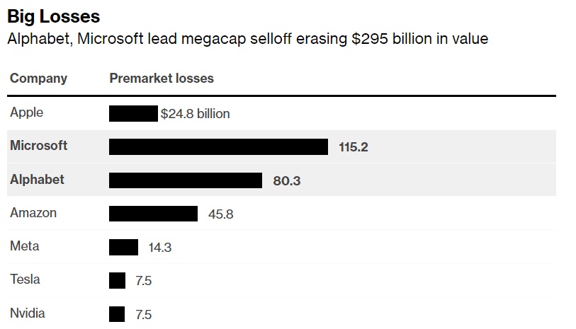 损失巨大——谷歌、微软领跌大型科技股,盘前市值合计蒸发约2950亿美元