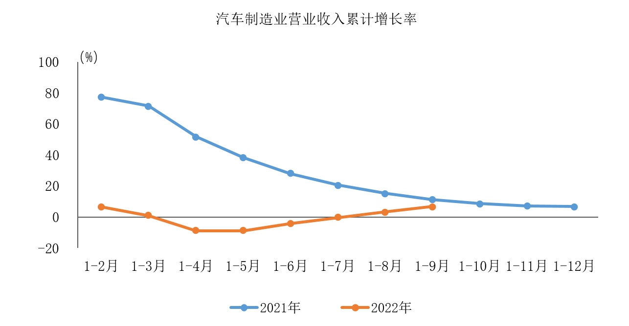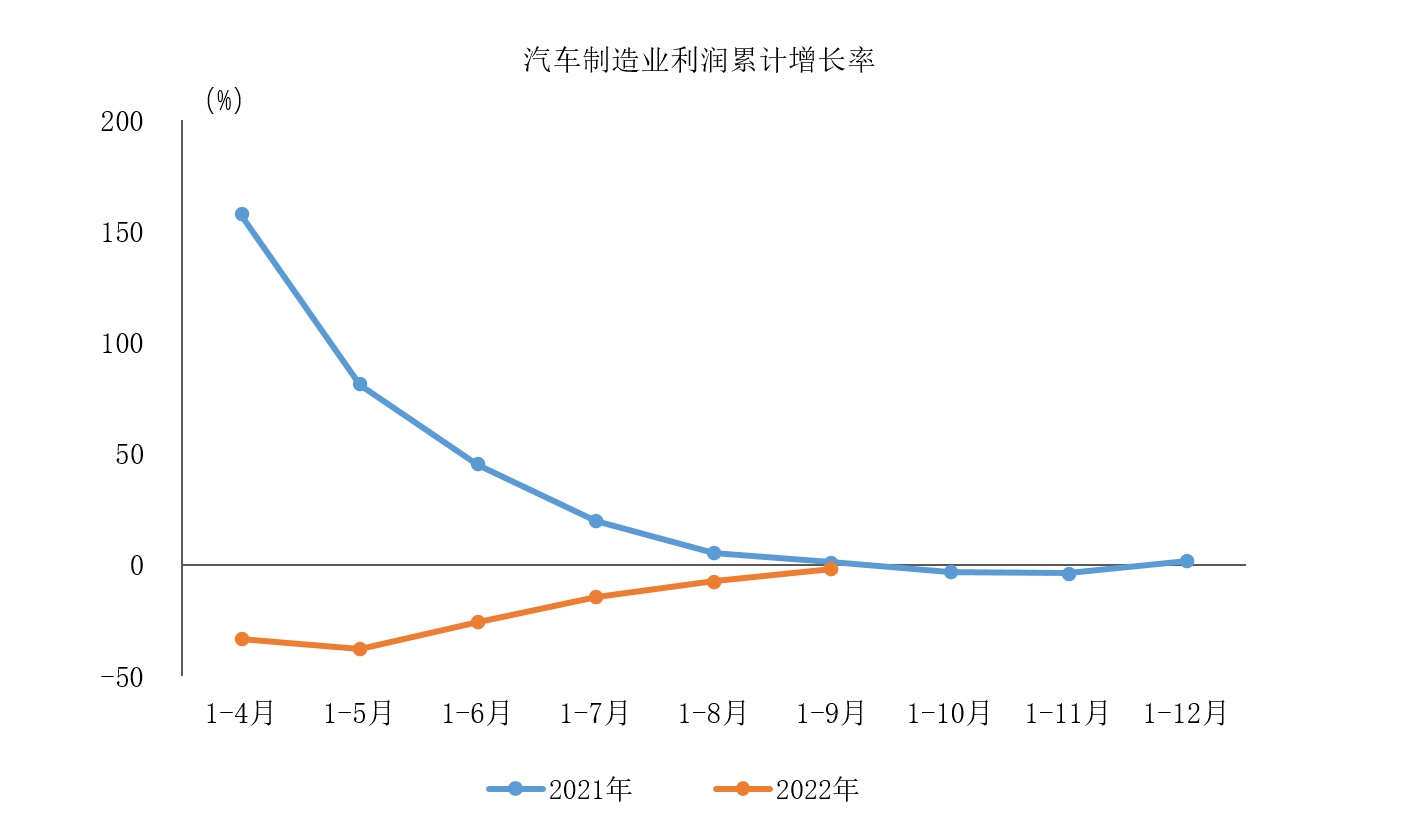 2022年9月,在产业链供应链修复、新能源汽车生产增长等因素带动下,利润增长47.4%。2022年1-9月,汽车制造业利润3706.8亿元,同比下降1.9%,降幅较1-8月降幅收窄5.4个百分点,占规模以上工业企业利润总额的比重为5.9%。
