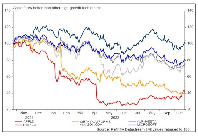 Berstain分析师托尼·萨克纳吉表示:“我们担心苹果可能是疫情的受益者,因为在家学习和强劲的消费者支出,这种情况可能会逆转,特别是随着消费者支出优先级的变化和利率上升可能会对需求造成压力。”