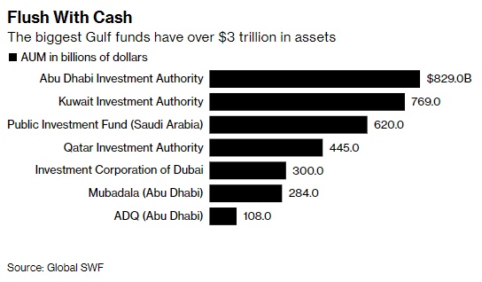 阿布扎比投资局是海湾地区增加对美国投资的主权财富基金之一,目的是抓住疫情影响和对全球衰退担忧加剧所带来的机遇。阿布扎比另一家投资公司皇家集团计划向美国和欧洲股市投资至多100亿美元,以扩大其全球投资组合。在邻国沙特阿拉伯,6200亿美元的公共投资基金(PIF)一直在加大对美国的投资。