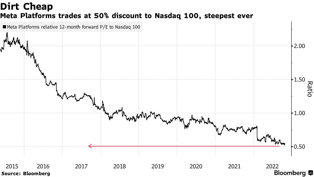 Meta估值水平较纳斯达克100指数有50%折让,创历史新高