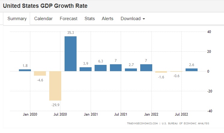 智通财经APP获悉,美国经济数据分析局周四公布的最新数据显示,美国季度GDP在今年第三季度首次实现年内正增长,至少暂时缓解了市场对高通胀的担忧情绪。最新的GDP初值数据是7月至9月期间美国所有商品和服务产出的总和,在这期间的GDP年化季度增长率2.6%,超过经济学家预测的2.3%。