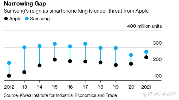三星在智能手机领域的霸主地位正受到苹果的挑战