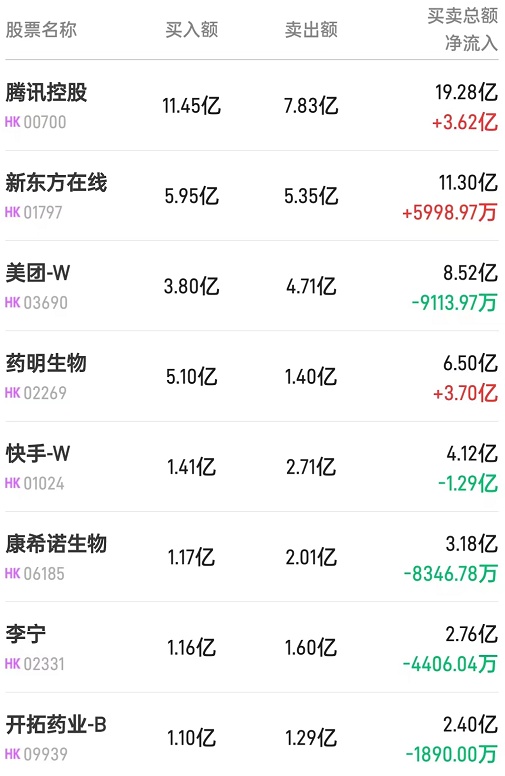 新东方在线(01797)获净买入5998万港元。消息面上,西南证券发研报表示,东方甄选表现出类拔萃,多个垂类直播间扩充产品矩阵。预计会员总数有望在2022年底达3000万。东方甄选在主账号相对全品类的定位下,公司陆续推出图书、美丽生活和自营产品三个相对垂直的账号,实现品类扩充以及用户分流。此外,东方甄选自营产品不断扩品且供应链不断完善,利润率水平或高于可比公司。