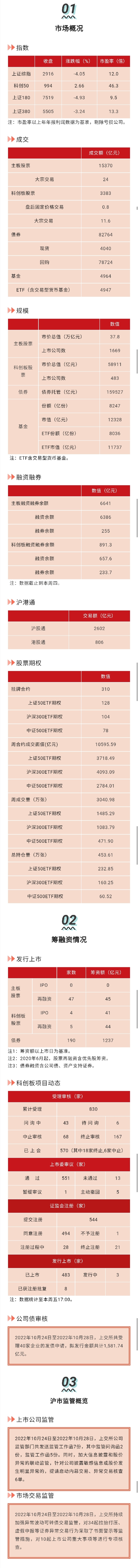 智通财经APP获悉,10月28日,上交所发布沪市市场运行情况(2022年10月24日至2022年10月28日)。监管方面,上交所公司监管部门共发送监管工作函7份,其中监管问询函2份,监管工作函5份。同时,加大信息披露和股价异常的联动监管,针对公司披露敏感信息或股价发生明显异常的,提请启动内幕交易、异常交易核查6单。上交所持续加强异常波动可转债交易监管,对34起拉抬打压、虚假申报等证券异常交易行为采取了书面警示等监管措施,对10起上市公司重大事项等进行专项核查。
