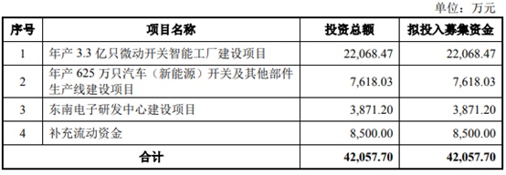 据了解,东南电子募集资金扣除发行费用后,拟用于以下列项目:
